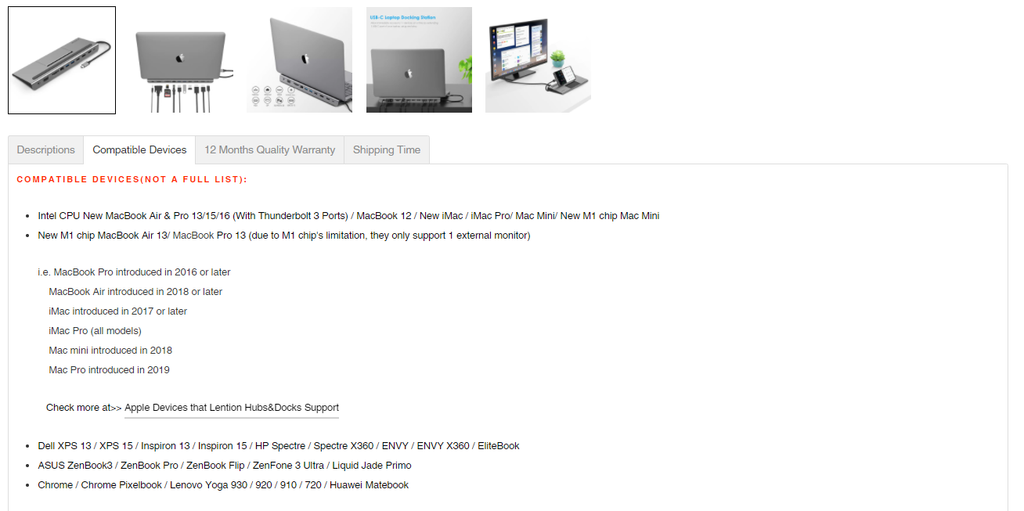 Suppose you are using MacBook, congratulations! You can easily find whether a USB hub or docking station is compatible with your device because most of the description of the product page will show the exact type of apple’s MacBook.And commonly, all USB-C hub or docking station will support MacBook with a USB-C port. See their list here: