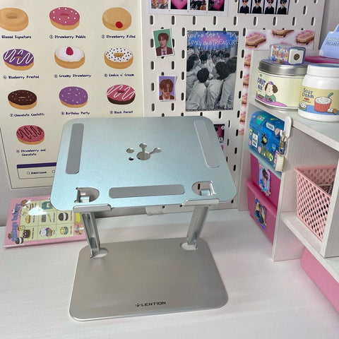 ก๊อกๆ มีของมาป้ายยาอีกแล้ว เป็นน้องที่วางโน๊ตบุ๊ค lention L5b สี silver น้องแข็งแรงมาก ปรับได้หลายระดับ นั่งพิมพ์งานสะดวกขึ้นเยอะเลย Ⓜ️💭ใส่โค๊ดนี้👉🏻 TULS20 แล้วได้ลด 20% เลยงับ สั่งซื้อ @lentionofficial เลยยย 🩱⚠️🥩♻️