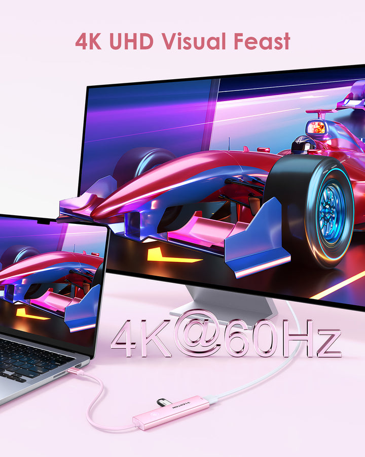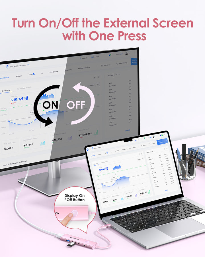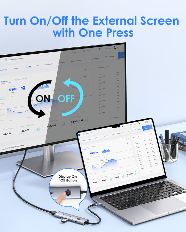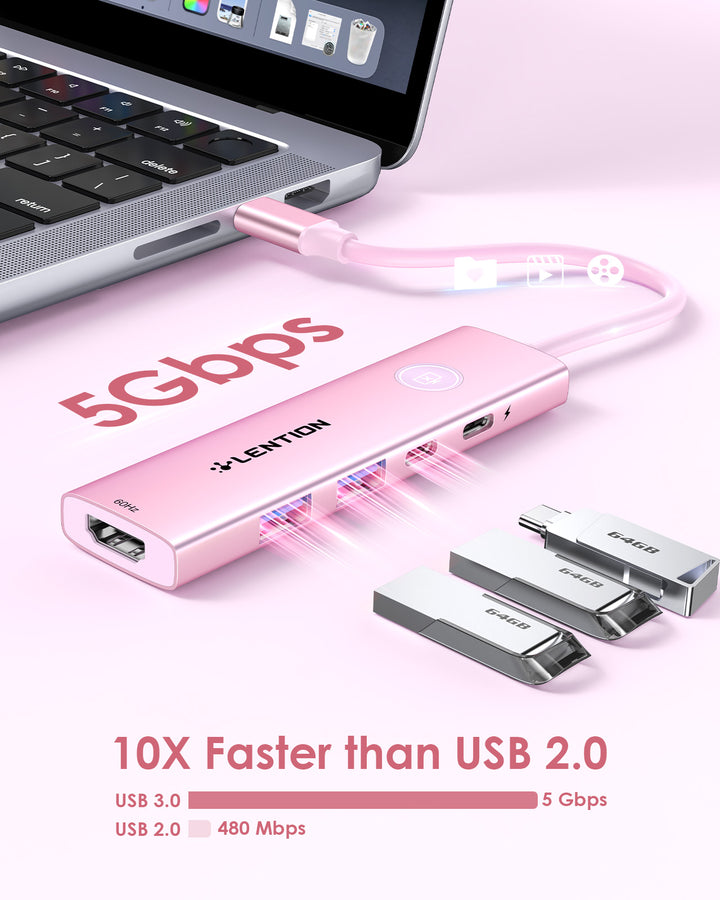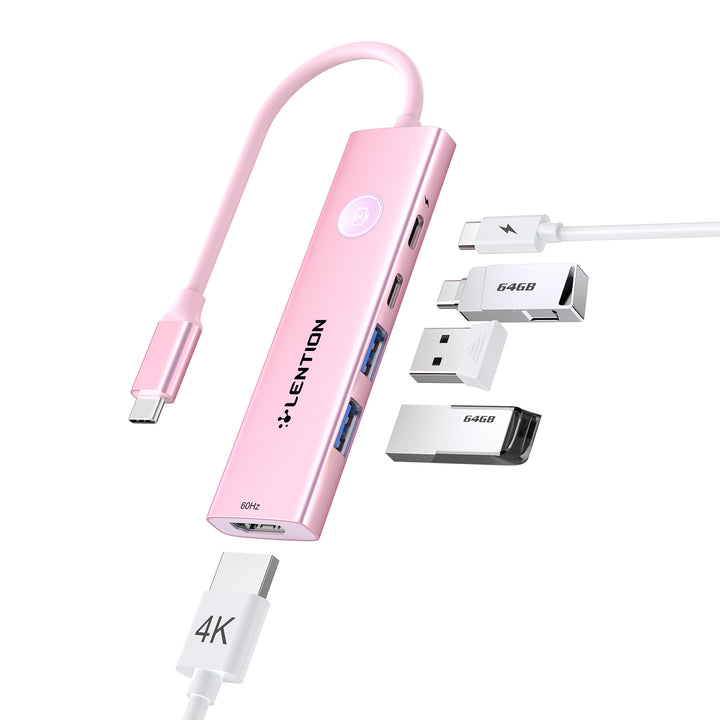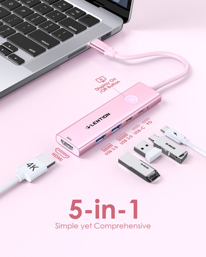 LENTION 5-in-1 USB C Hub with HDMI 4K@60Hz, Screen On/Off Button for MacBook(CH15s)