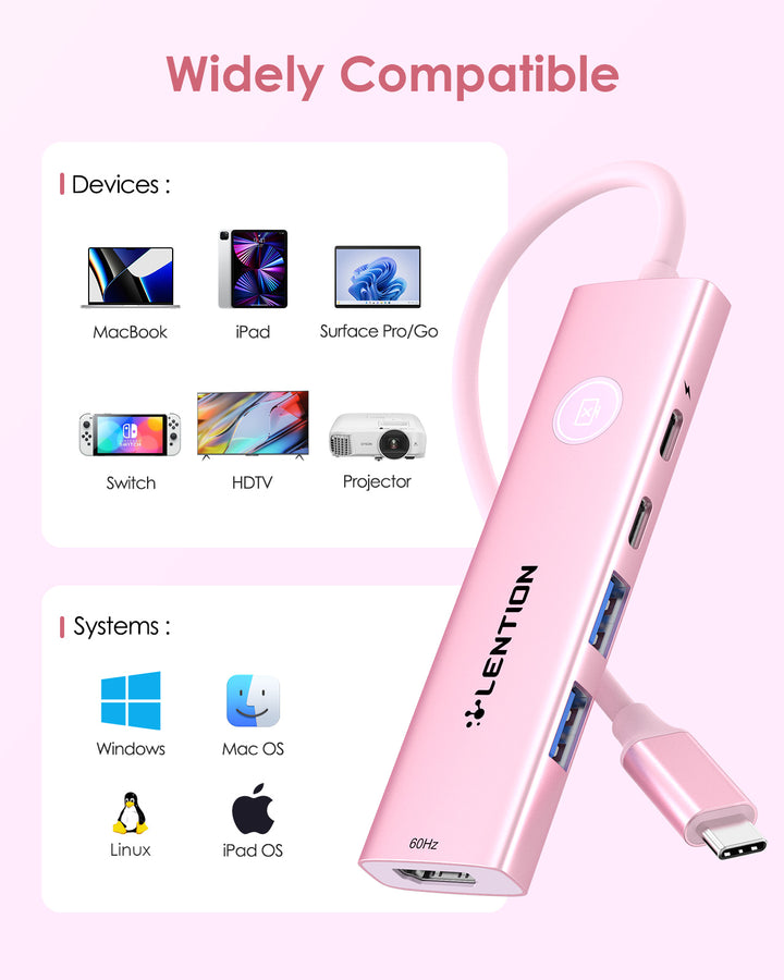 · 𝐀𝐥𝐥-𝐢𝐧-𝐎𝐧𝐞 𝐔𝐒𝐁-𝐂 𝐇𝐮𝐛 𝐟𝐨𝐫 𝐔𝐥𝐭𝐢𝐦𝐚𝐭𝐞 𝐂𝐨𝐧𝐯𝐞𝐧𝐢𝐞𝐧𝐜𝐞: Lention USB C Hub multiport adapter is made of Aluminum material, Combines USB-C 3.0 and USB-A 3.0 ports for 5Gbps data transfer, HDMI 4K@60Hz for crystal-clear video, and 100W Power Delivery for efficient charging,perfect for professionals, students, and gamers.