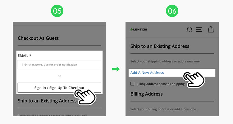 - If you have not sign up on our website before, you just need to fill in your email address and your shipping address below.
