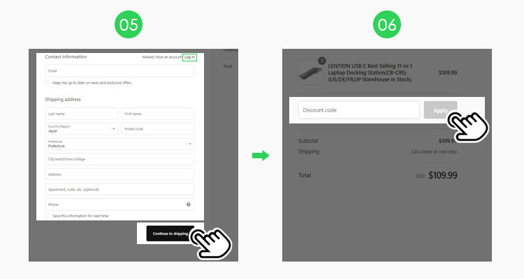 - If you have signed up on our website before you can Click "Log in" to automatically fill in your address you entered before.