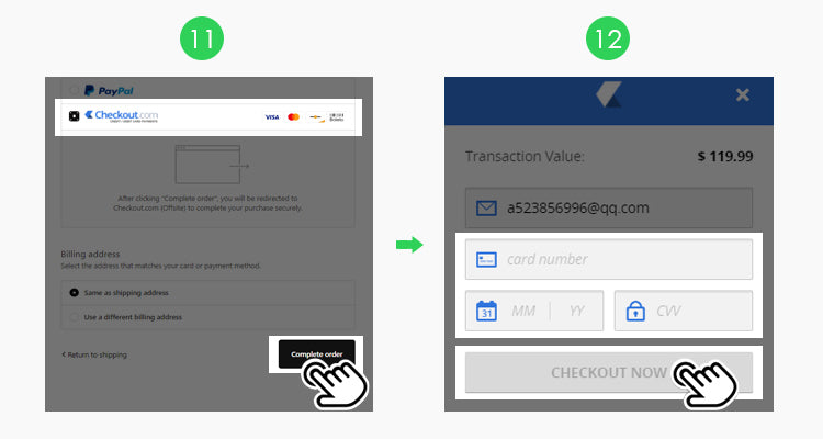 Enter your credit card information on this page and click "CHECKOUT NOW" to complete the payment
